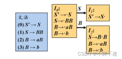 Encountered input symbol S S S Enter a new state I 0 I_0 I0, First, add the follow-up projects to I 1 I_1 I1 Project focus ( Including the foresight symbol ), Find yourself forming closures .