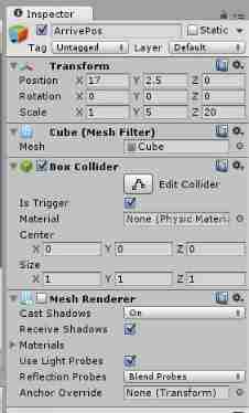 And then in every Road Next , Add one Cube, take Cube Of Mesh Renderer close , And its Box Collider Of Is Trigger On the hook . Name it ArrivePos.( I won't tell you that this step should be done before the previous line !)
