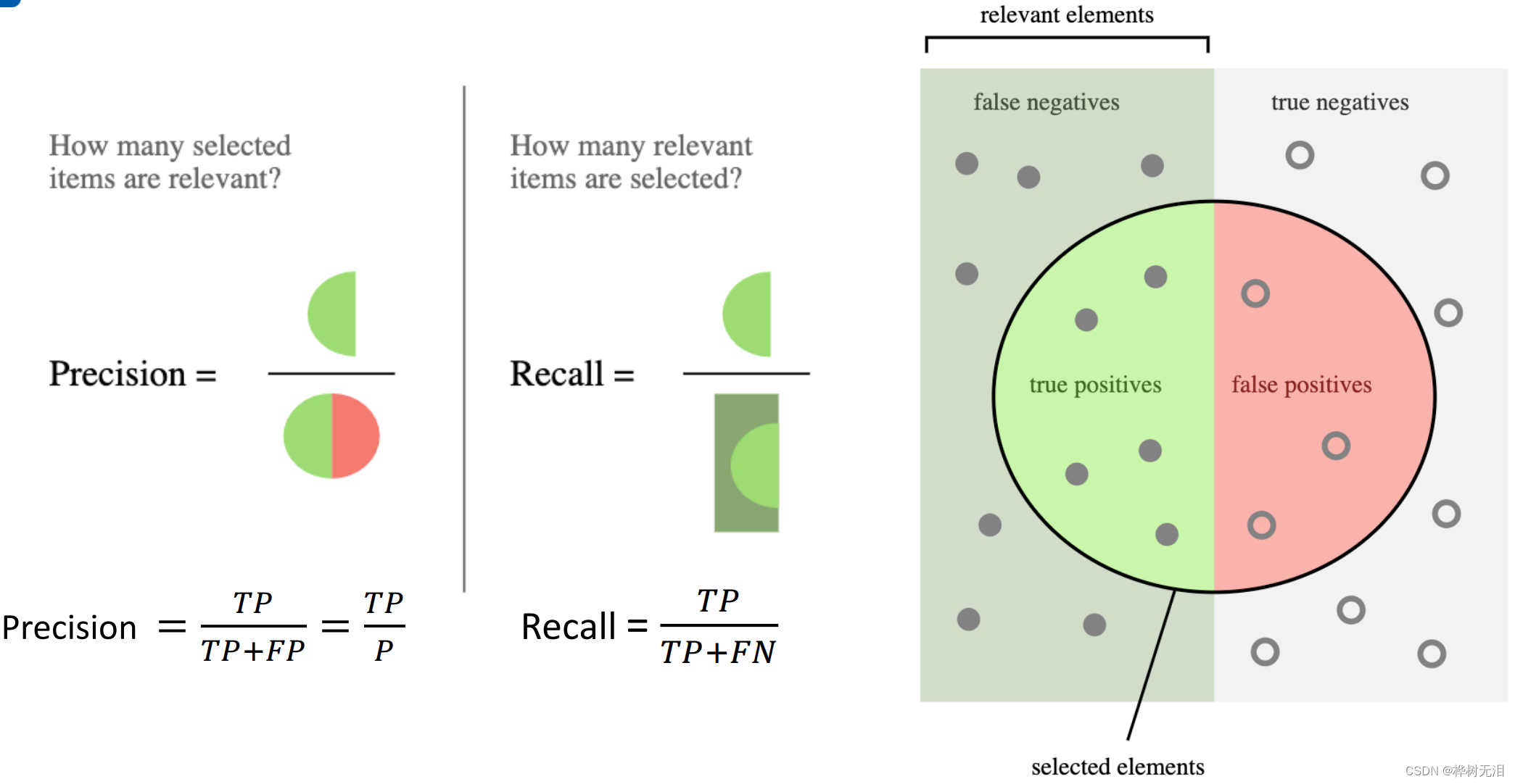 Precision: Probability of detecting the right Recall: Probability of detection It's hard to have both