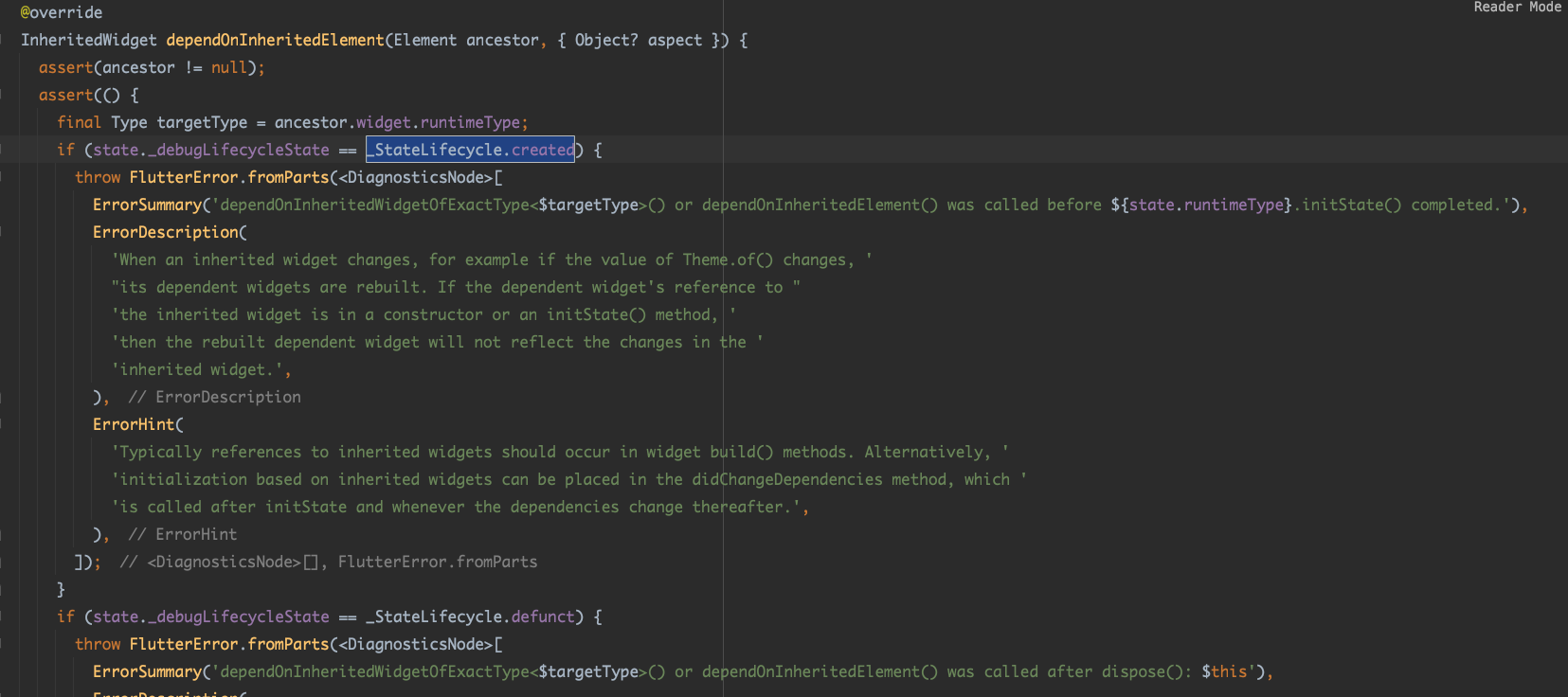 Remember the front log Do you ? When the first example goes wrong ,log There is a method in , That is to say State Of didChangeDependencies Method .