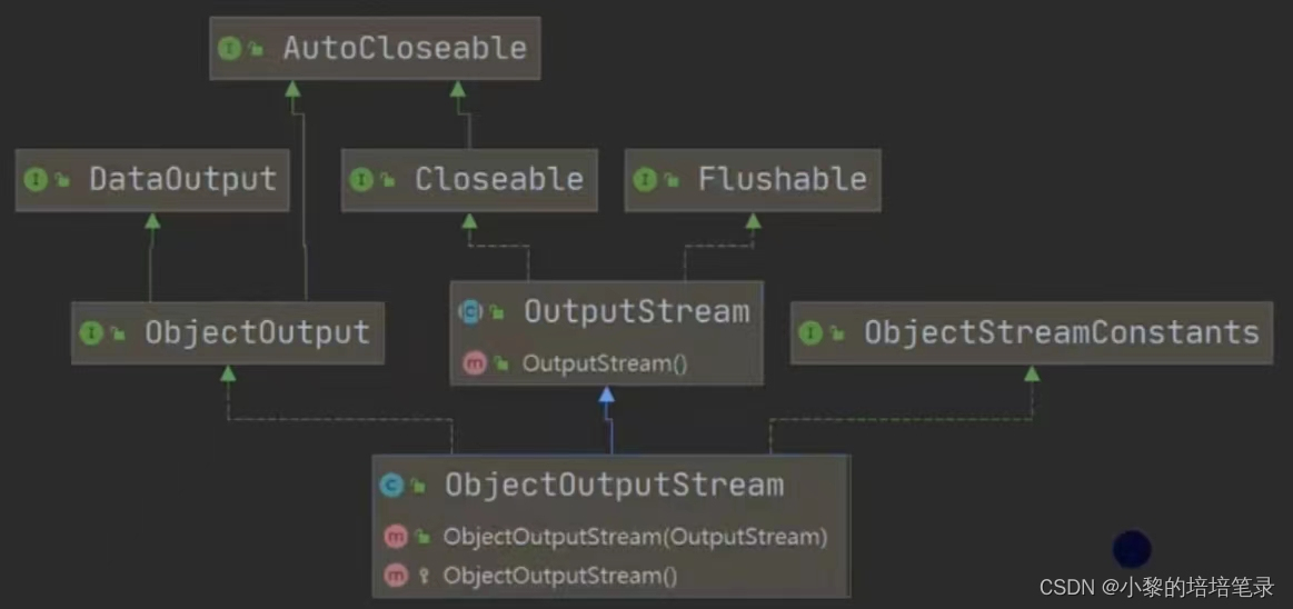 ①Serializable ②Externalizable- 功能:提供了对基本类型或对象类型的序列化和反序列化的方法