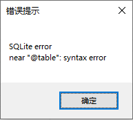 SQLite 提示错误:SQLite error near “@table“: syntax error