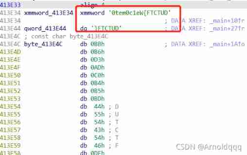 double-click xmmword_413E34 To follow up , You can see dutctf The words... There's another paragraph 16 Base string