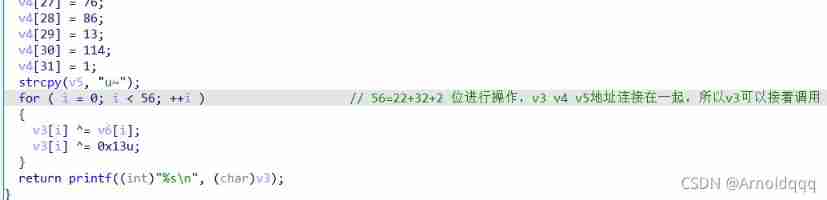 Follow up sub_45E940(), Through the loop , take a and b Array values xor operation , Then the array a The value of is equal to 0x13 xor operation