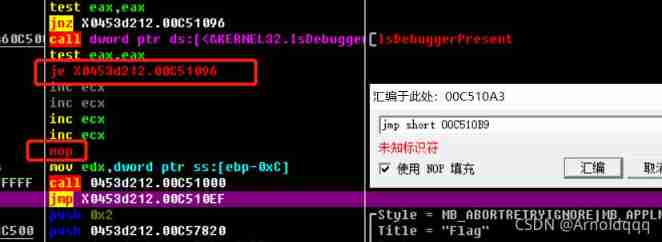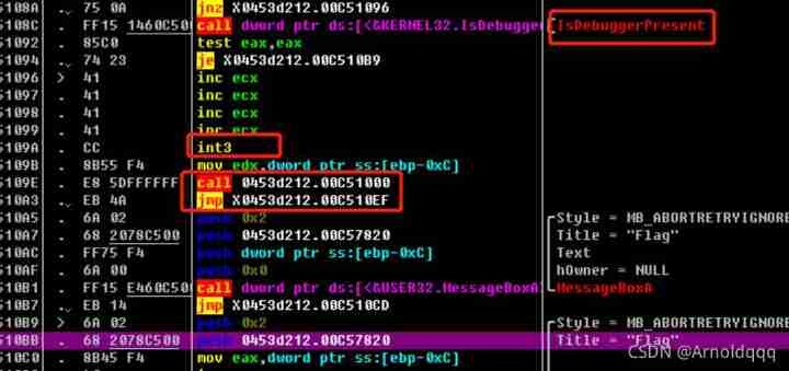 use od debugging To make the program jump to loc_401096 call sub_401000 decode , hold int3 Change it to nop(0x90), Jump to loc_4010B9 For the output