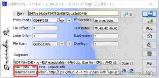 Use ExeinfoPe Check the shell , Found to have upx shell .