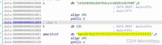 ida open Shift+F12 View the list of string variables You can see a string Guess it is encrypted flag