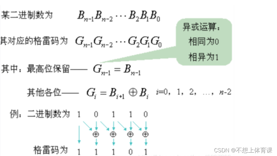 Convert binary gray code into natural binary code , The rule is to keep the highest bit of gray code as the highest bit of natural binary code , The second high bit natural binary code is the high bit natural binary code, which is different from the second high bit gray code , The other bits of natural binary code are similar to those of the next high bit natural binary code .