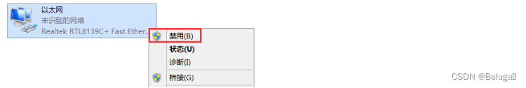 Right click Ethernet , Select disable