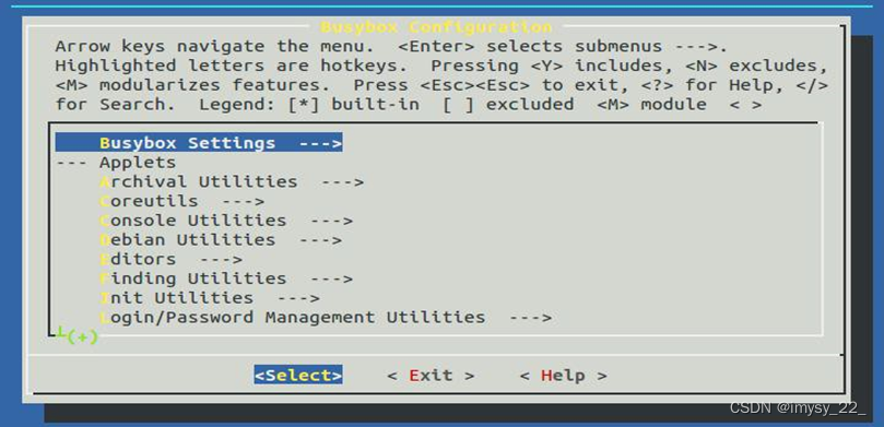 3、 Get into busybox Configuration interface ( And Linux The kernel configuration method is the same )