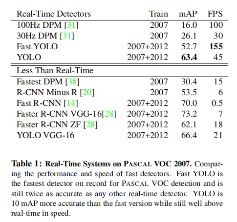 FastYOLO yes PASCAL The fastest target detection method in ; As far as we know , It is the fastest existing target detector . about 52.7% Of mAP, Its accuracy is more than twice that of previous real-time detection .YOLO take mAP Push up to 63.4%, While still maintaining real-time performance .