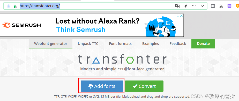 3、 open https://transfonter.org/, Import font-awesome Download the 【fontawesome-webfont.ttf】 file