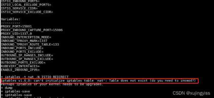 I have a problem ,iptables dependent , Cause initialization container startup failure , All involved in the use of proxy_init Image is the container for initialization , Will be affected , So we need to solve it by ourselves iptables The problem of .