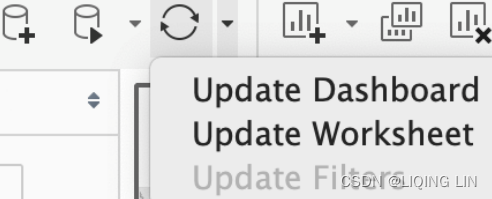 - 4. Click on the Run Update icon as shown in Figure 13.5 and select either Update Dashboard or Update Worksheet. The shortcut key for running an update is F9 on Windows. The shortcut on macOS is Shift + Command + 0: