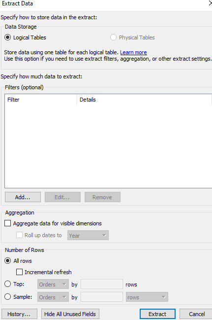 Aggregating data before you extract can increase performance because it will decrease the total row count. - Compile Query