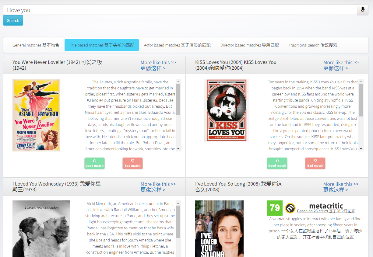Pure English website , Especially , Its search is based on Title matching 、 Based on director matching 、 Based on actor matching , It can find some content that cannot be found on other platforms .