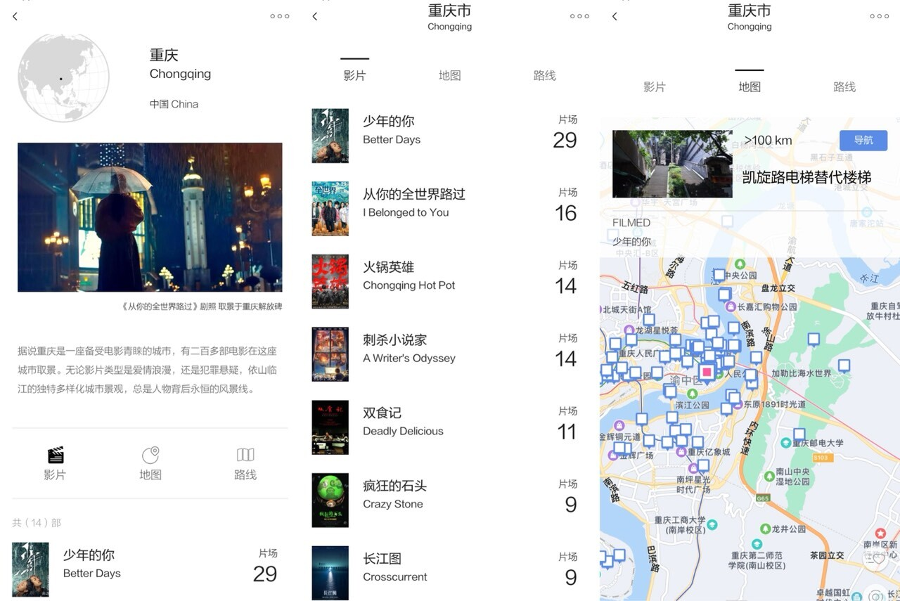 This is a app, The angle is very tricky It's hard core , No one knows . For example, you want to make a collection of films made in Chongqing , You can check here , You will find that the location of the camera is dense , I can't even see .