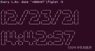 In addition to these , I read the articles of other bloggers on the Internet , Share a Figlet Clock example , By combination watch and date The command prints the date and time in standard font , The print is updated every second . Use when exiting ctrl+c.