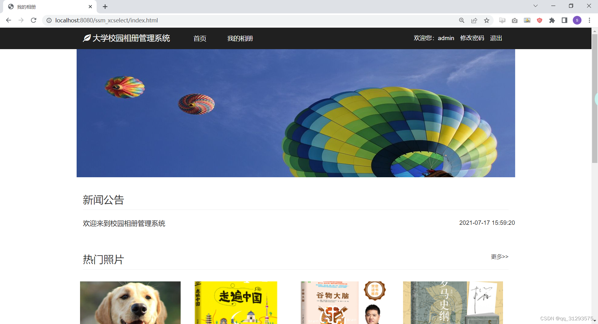 当前位置:网站首页>SSM online campus album management platform