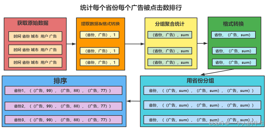//TODO 案例分析 统计出每个省份每个广告被点击数量排行的Top5