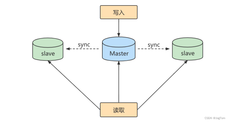 a host Used to handle all Write requests , a Slave Be responsible for all Read request , The architecture is as follows :