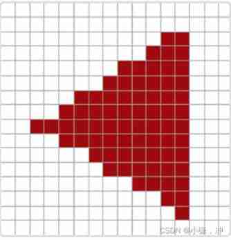 A grid of screen pixels , The center of each pixel contains a sampling point (Sample Point), It will be used to determine whether the triangle covers a pixel . The red sampling points in the figure are covered by triangles , A fragment is generated at each obscured pixel .