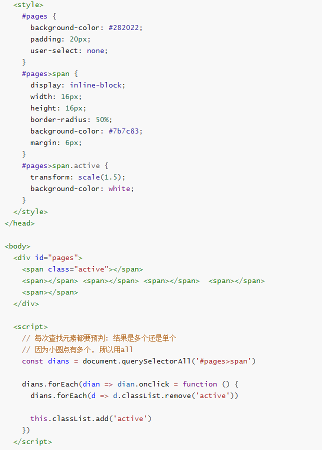 - querySelectorAll: The return value is an array of classes , Need to traverse