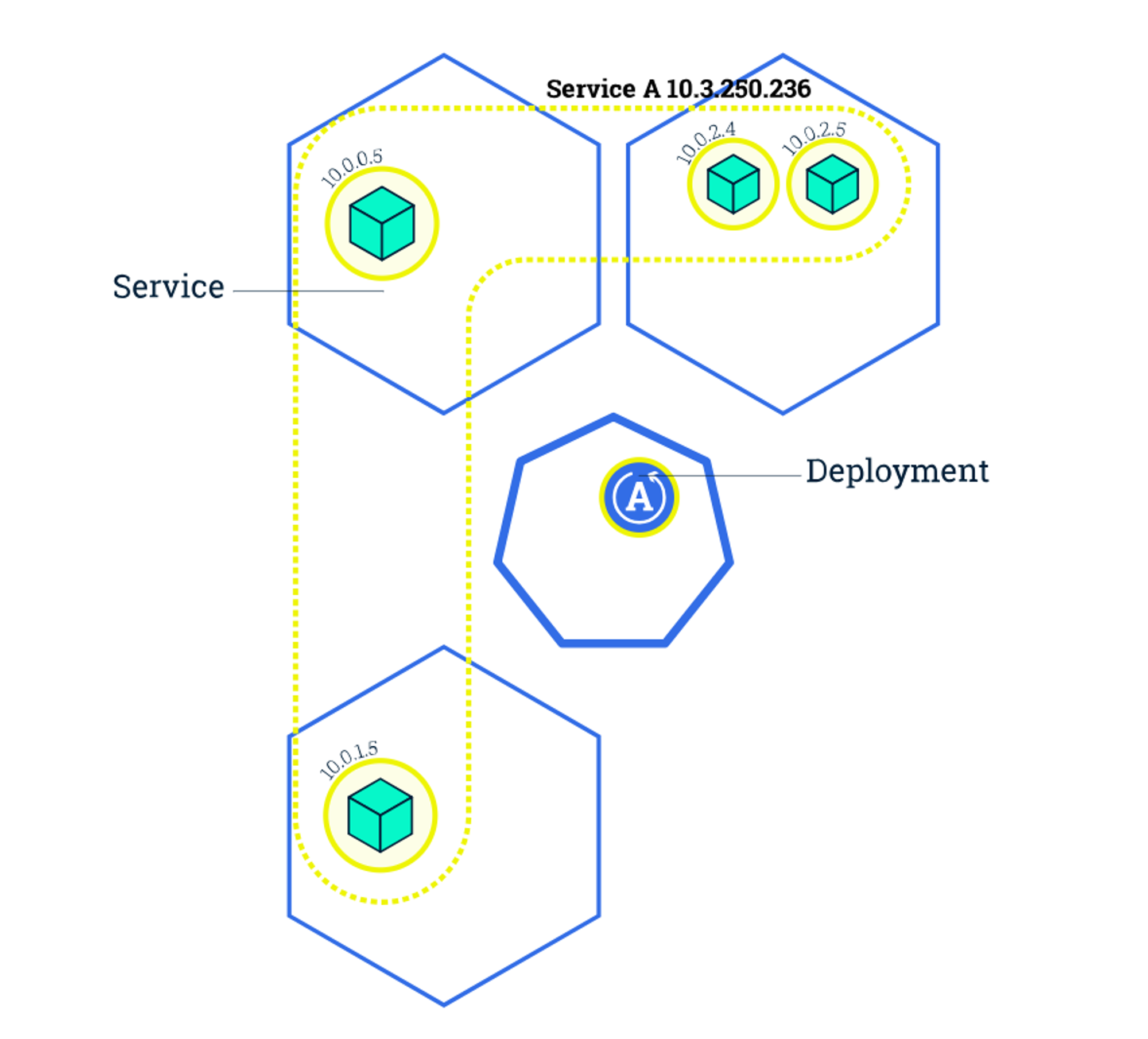 Deployment be in master Node , By publishing Deployment,master The node will select the appropriate worker Node creation Container( That is, the cube in the figure ),Container Will be included in the Pod ( The blue circle ) in .