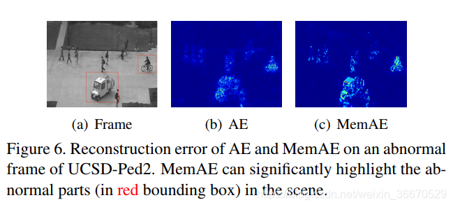 In the test phase , Memory after given training , Only normal patterns in memory can be extracted for reconstruction . therefore , Normal samples can be reconstructed well . contrary , The code of the abnormal input will be replaced by the retrieved normal mode , This leads to significant refactoring errors for exceptions ( See chart 4 Visual examples in ).
