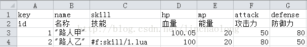 excel配置表示例: