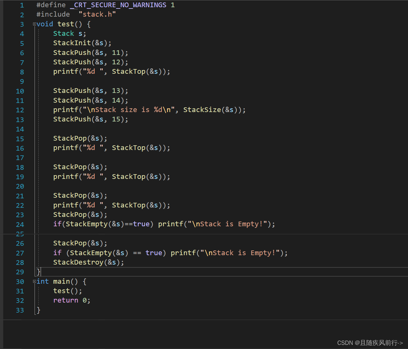 int StackSize(Stack* ps);具体实现如下: