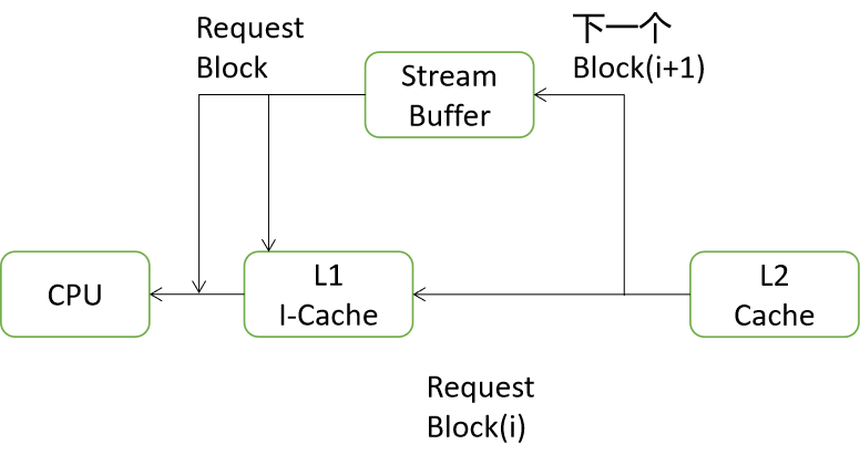 When I-Cache When a loss occurs , Processing the data blocks that will be needed data block Take it out of the lower level memory and put it in I-Cache in , It will also drop a data block and read it out , But it won't be put in I-Cache in , It's about putting Stream Buffer The place of . In subsequent execution , If in I-Cache Missing in , But in Stream Buffer Found the desired command , So in addition to using Stream Buffer Out of the instructions read in , The corresponding data blocks will also be moved to I-Cache in , At the same time, continue to read the next data block from the next level of memory and put it into Stream Buffer, When no branch instruction is encountered in the program , This method will always work correctly , So that I-Cache The deletion rate of is reduced . But branch instructions can lead to Stream Buffer The instruction of is invalid , Prefetching at this time is equivalent to doing useless work , Wasted bus bandwidth and power consumption . Prefetching is a double-edged sword , It may reduce Cache The missing rate of , It may also waste power and performance due to incorrect prefetching .
