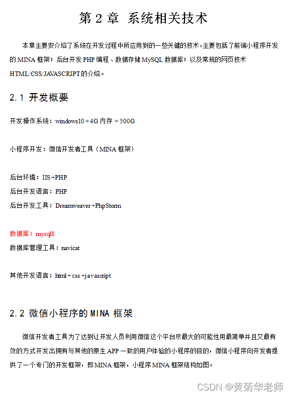 主要安介绍了系统在开发过程中所应用到的一些关键的技术,主要包括了前端小程序开发的MINA框架;