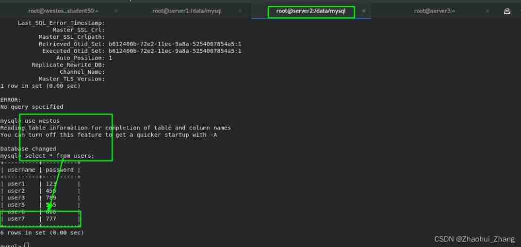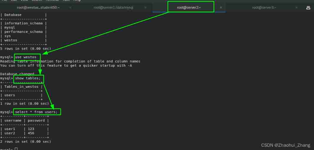 stay server2 in , Nothing moved , stay server1 The newly changed data in the master server will be automatically synchronized to server2 From the server .
