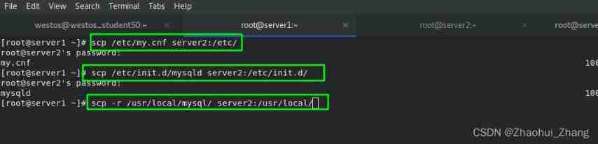 The first server1 in mysql Configuration file for 、 Execute command script 、 The compiled file is copied intact to server2 Under the same directory in .