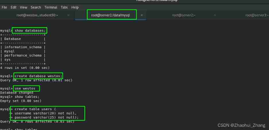 Enter the first server3 In the database of , What also have no , either <westos> surface , So I created a <westos> surface .