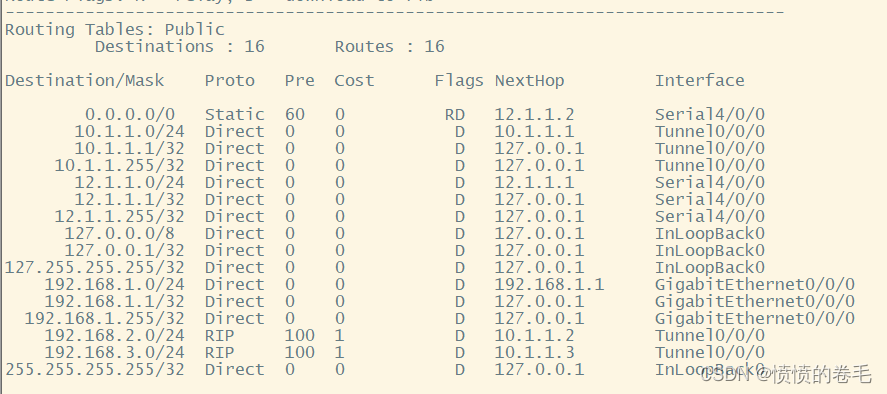 在配置完成上述配置之后我们可以查看路由表来查看是否学习到了这些路由