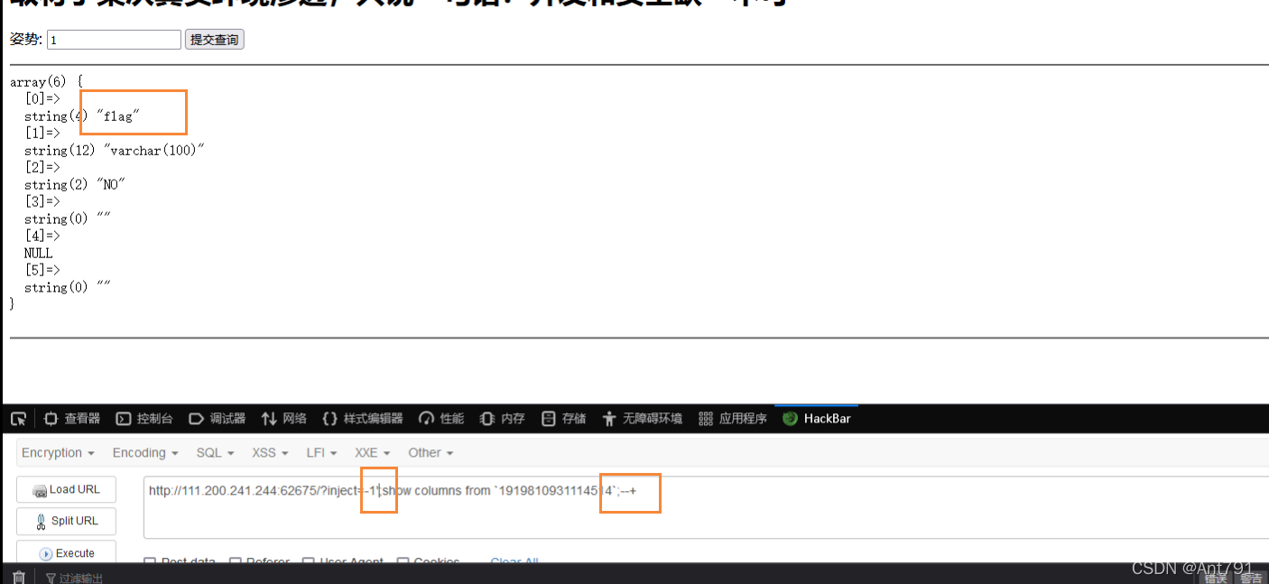 Use rename and alter These two commands are used to change the table name and field name . Because we can visit words Inside columns, Find out id, That is to say, what we input 1 The default is query words This watch . So we can put words Change the name of the watch into words1 surface , hold 1919810931114514 Change the name of the watch into words, Then take it. 1919810931114514 Inside flag Change the field name to id, Then input 1’ or 1=1# You can successfully get flag 了 .