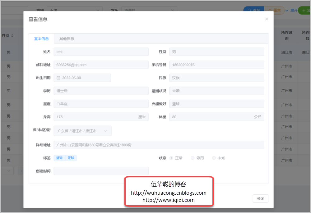With these treatments , It's normal for us to check the detailed page pop-up and close . The effect of the page is as follows .