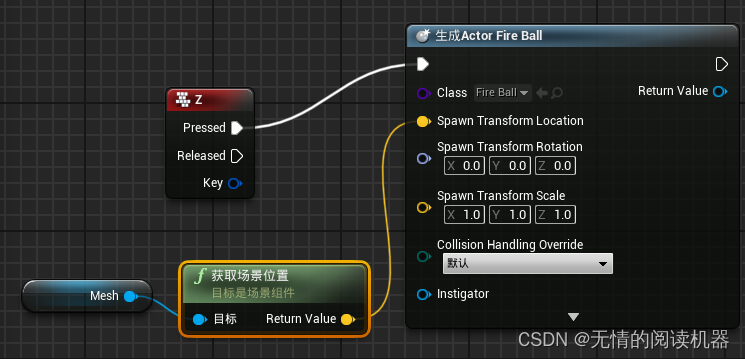 添加Z键盘事件触发从类生成actor节点。