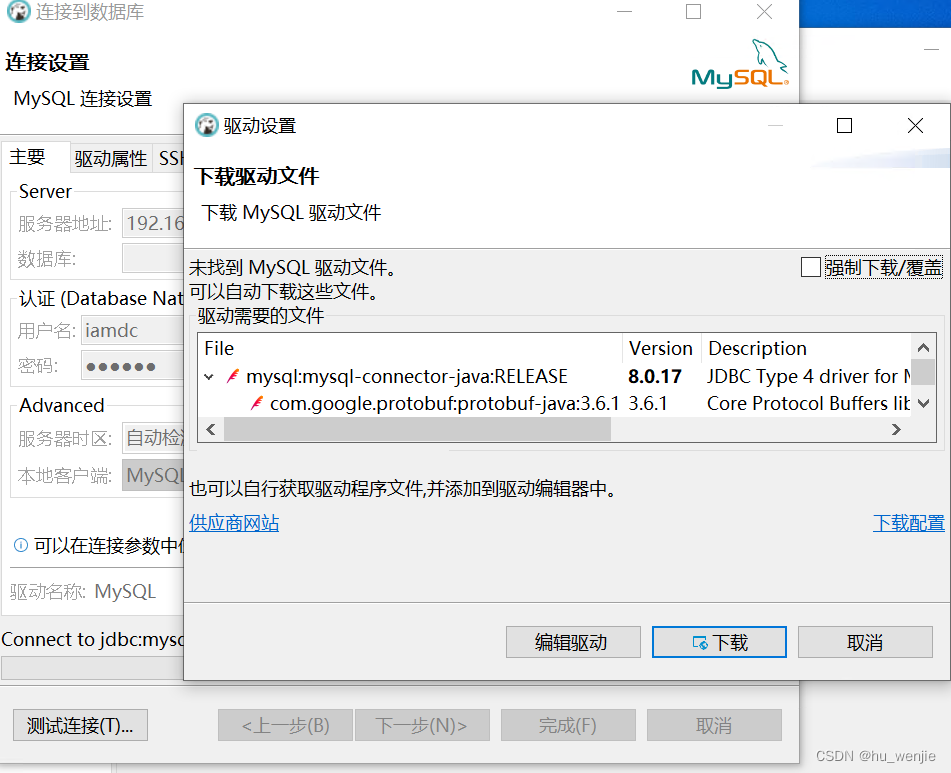当填写好连接信息之后,点击测试连接,软件将自动检测驱动是否存在,如果不存在将自动搜索驱动并下载