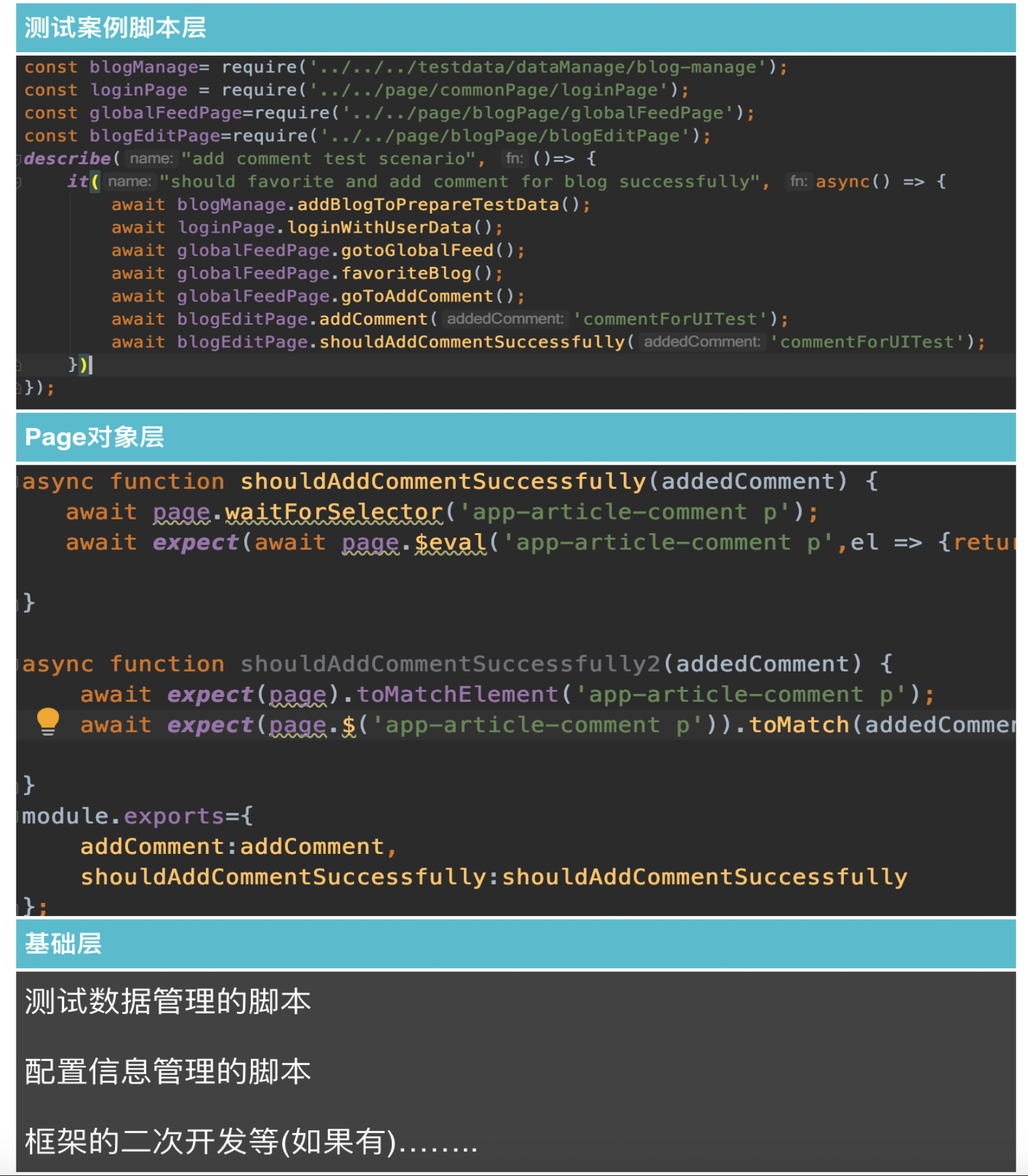 - Clear code hierarchy , Commonly used layers are 3 The layer structure : Base layer 、Page layer 、Case layer 、 perhaps 4 The layer structure : Base layer 、Page layer 、 Business logic layer 、Case layer .
