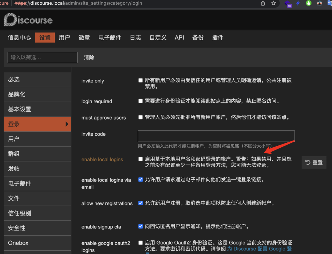 关闭本地登录(建议稳妥起见,在单点登录配置完成后关闭也可以)。
