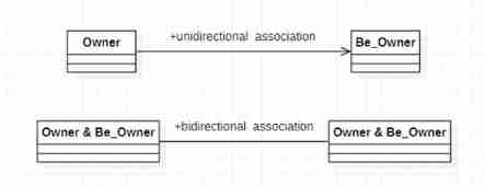 Ownership , The owner can know the properties and methods of the owner . The owner is the attribute of the owner . Association is divided into one-way Association (unidirectional association) And two-way Association (bidirectional association).
