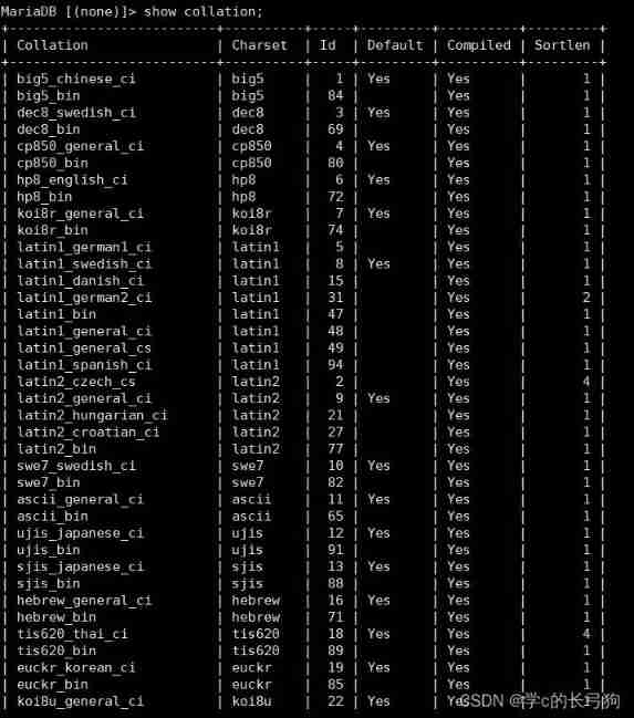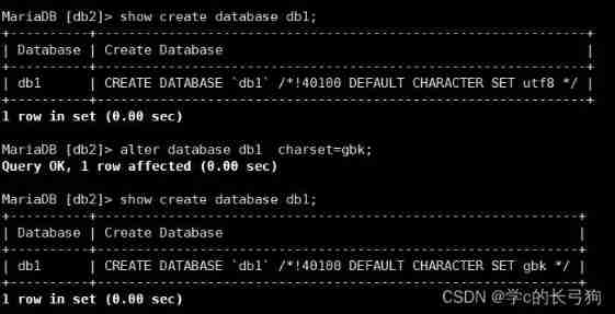 create database db1;This creation does not specify the character set and validation rules to be used , The default character set is :utf8, The verification rule is :utf8_general_ci.