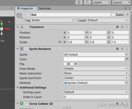 值得注意的是,根节点通常是场景对象(Scene),所有游戏对象都包含在场景中。比如例子中的football就是当前的场景对象。