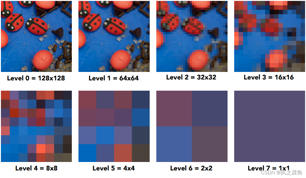 定义:存储多层次纹理副本,根据实际精度直接查询不同层次副本