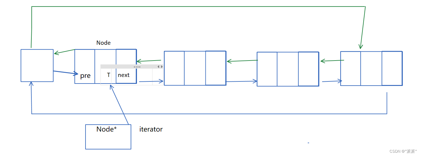 接下来要对结点进行操作,完成遍历,增删查改等等,可再构造一个结构体,存储上面Node的指针。也就是一个迭代器。如图
